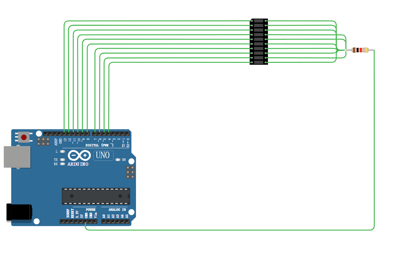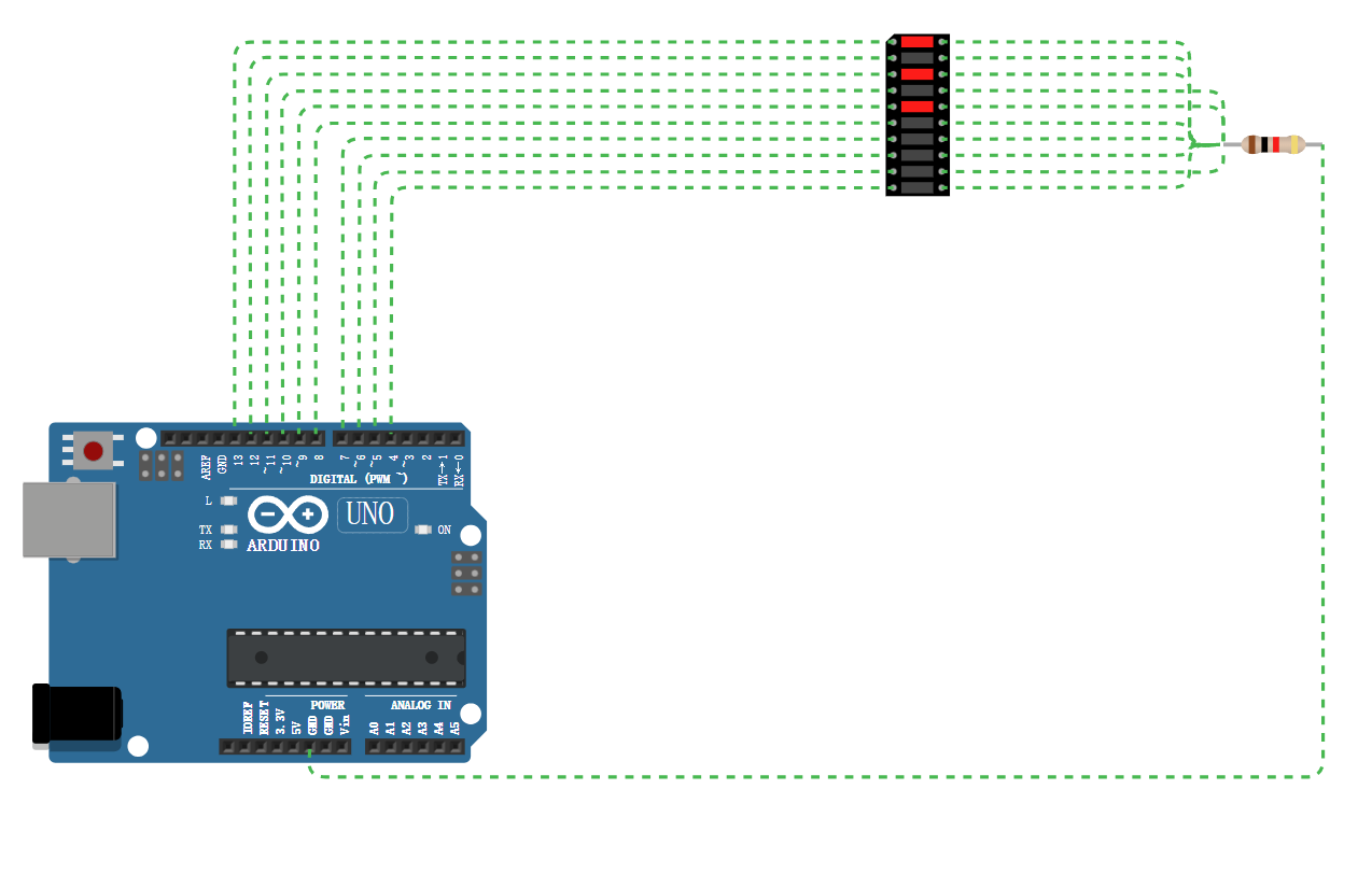 原理:led 条形图相当于 10 个 led 灯连接起来,让指定的一盏或多盏 led 灯点亮与熄灭