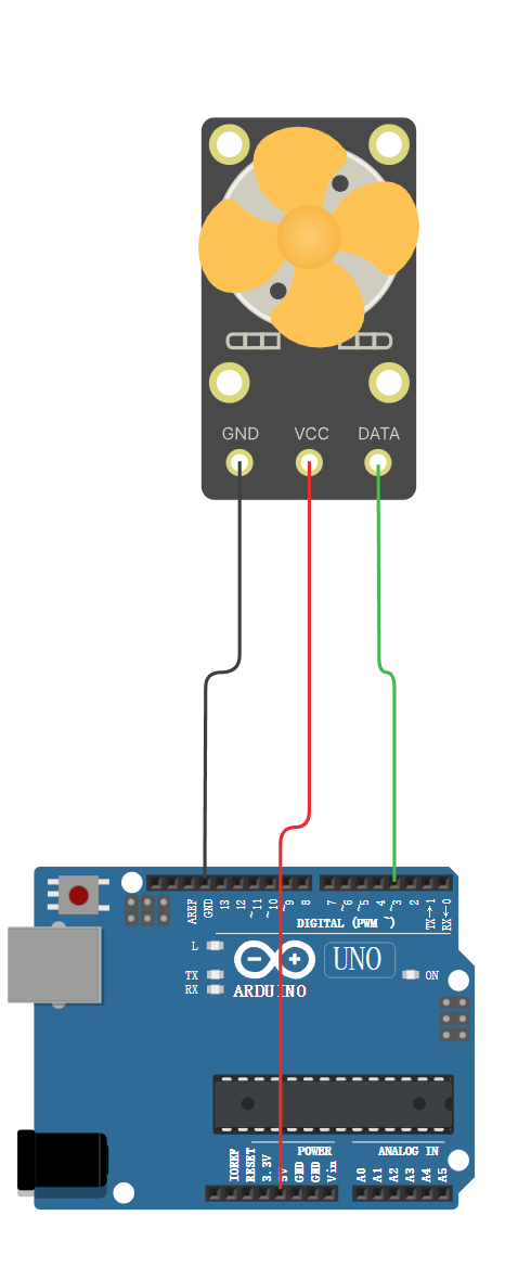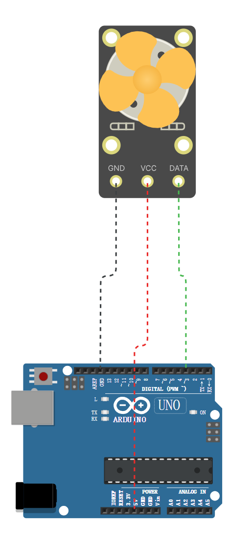 DATA:控制风扇速度,连接 Arduino 数字引脚(0~13)