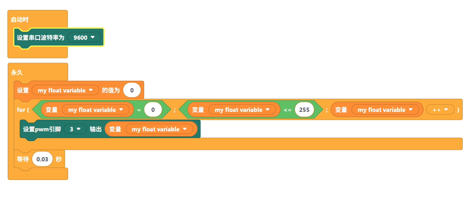 for( my_float_variable = 0; my_float_variable <= 255; my_float_variable++){
