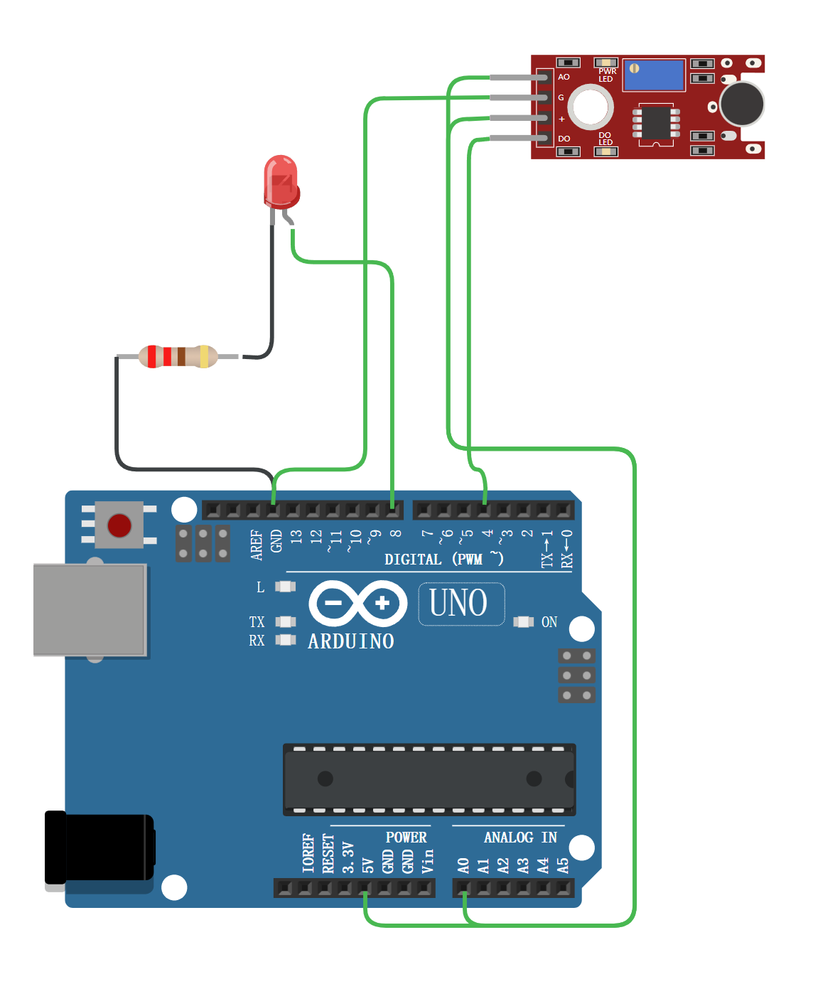 AO | 数字引脚 | 模拟量输出,实时输出麦克风的电压信号 |
