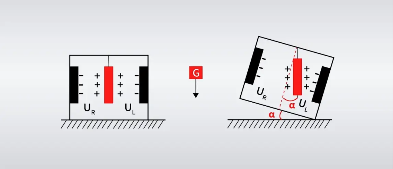 倾斜传感器的工作是基于基于牛顿第二定律原理,当物体没有受到外力时,重力会使加速度计指向地球的重力方向。