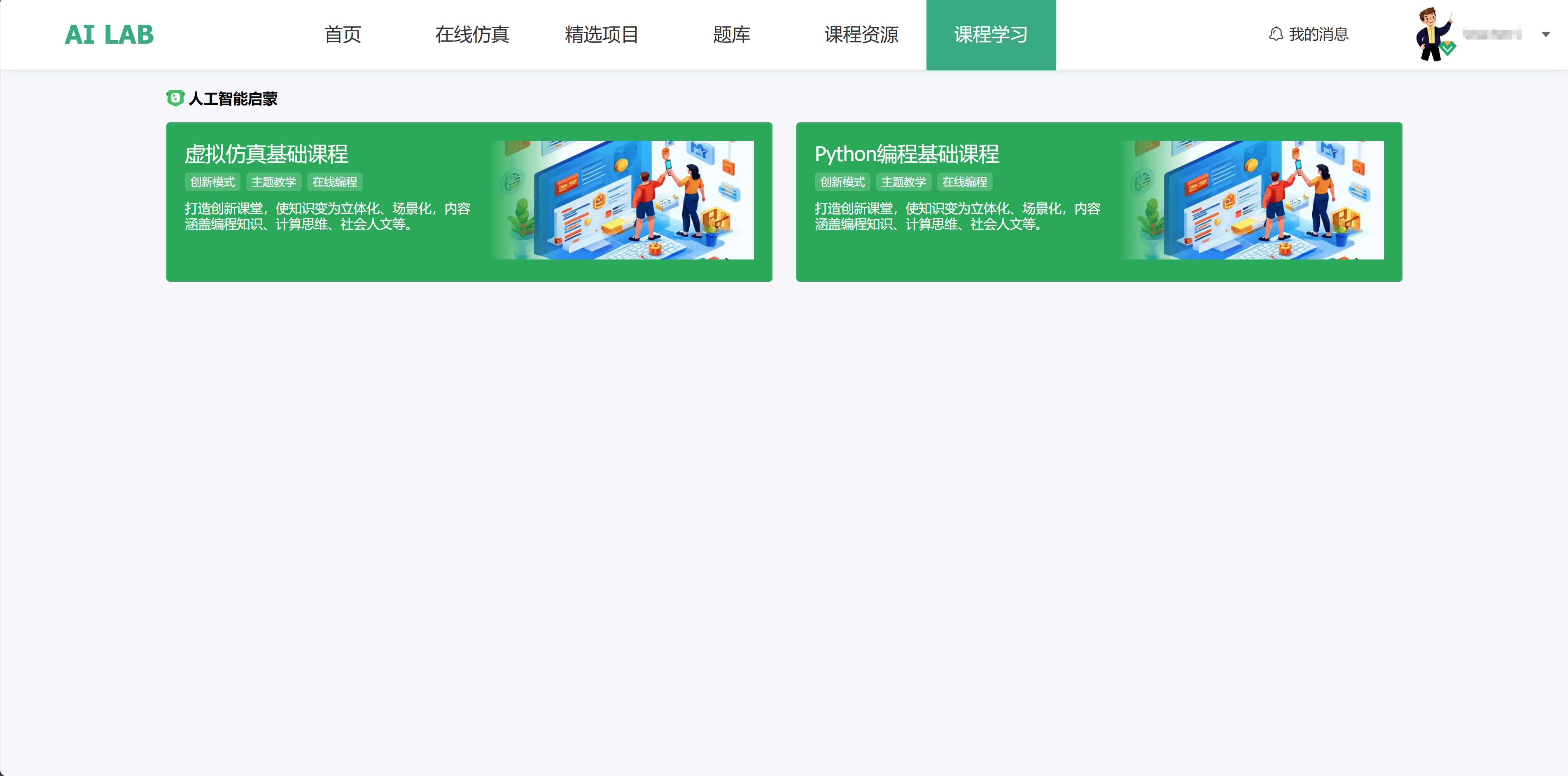 Python 编程课程包含两部分,分别为基础课程与进阶课程,在基础课程中,主要讲解 Python 基础内容,将立足于平台的 Python 在线编程与正在开发的 Python 图形化编程系统,与平台资源匹配,依据青少年编程能力等级(https://www.ttbz.org.cn/Pdfs/Index/?ftype=st&pms=30606)确认课程编排;在进阶课程中,主要讲解人工智能与机器学习相关内容,课程正在开发当中,将会上线于课程学习中心,如下图所示。