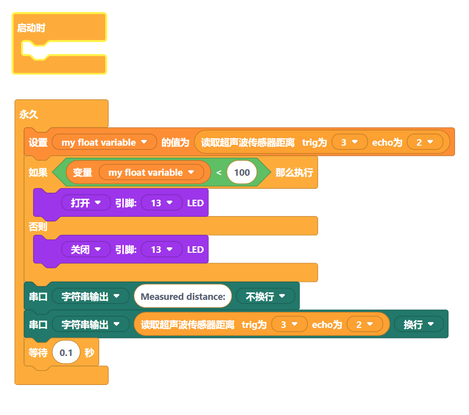 图形化代码不需要额外编写函数,在传感器模块中,已经封装测距函数。