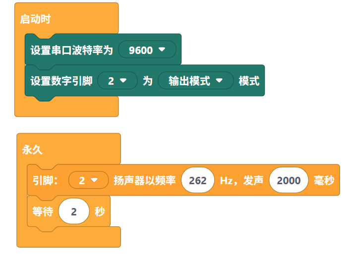 - 扬声器连接数字引脚 2,并将其设置为输出模式