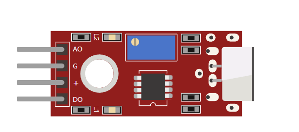 DO | 模拟引脚 | 当声音强度到达某个阀值时,输出高低电平信号【阀值-灵敏度可以通过电位器调节】 |