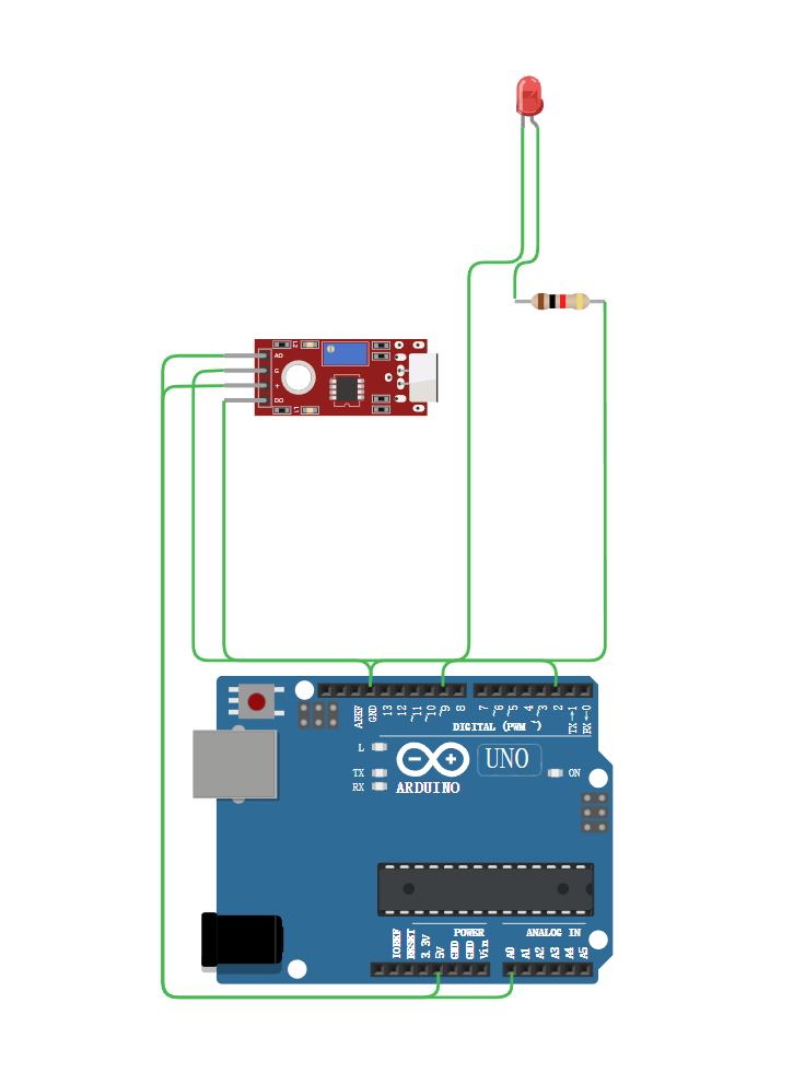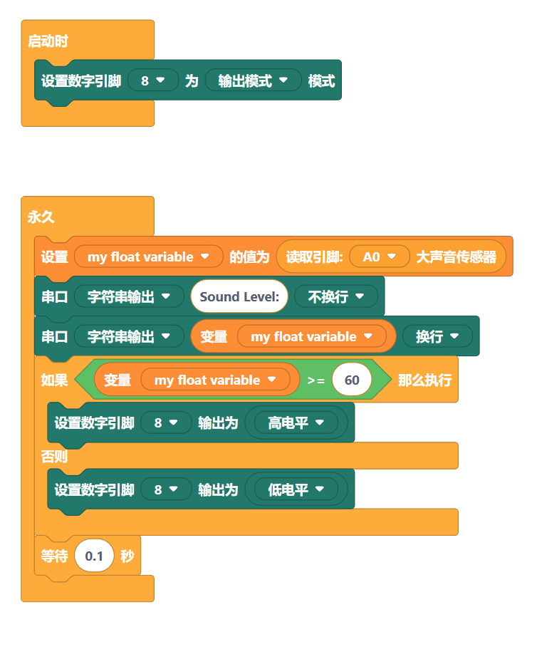 为了更好的演示大声音传感器感知音量以及控制功能,下面结合控制一个 LED 灯进行演示。