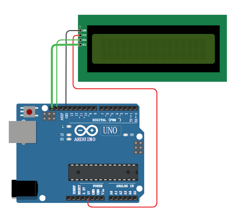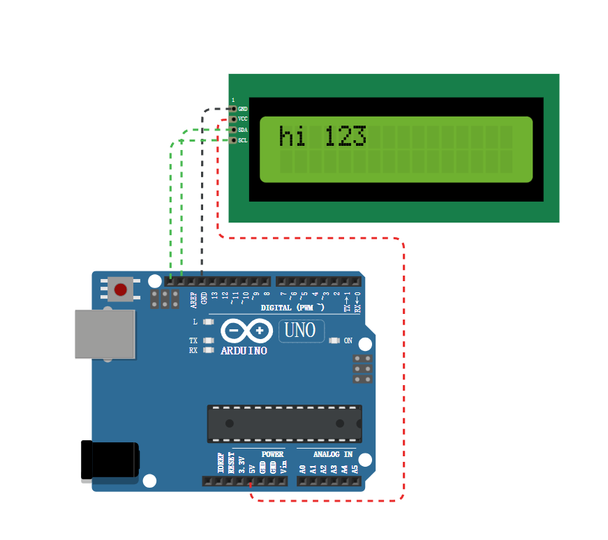 SDA:串行数据传输线,负责在主设备(如微控制器)和从设备(显示屏)之间传输数据(包括命令和显示内容),连接 Arduino 的 A5