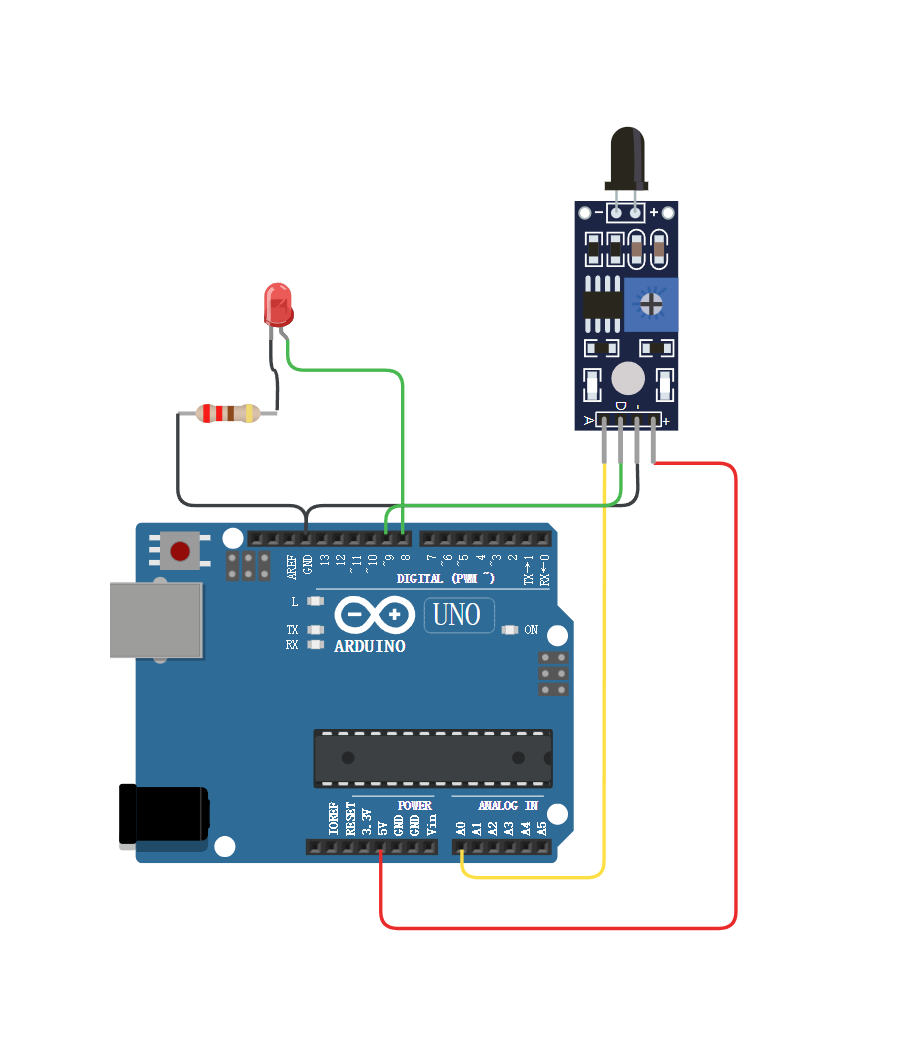 为了更好的演示火焰传感器感知火焰强度以及控制功能,下面结合控制一个 LED 灯进行演示。