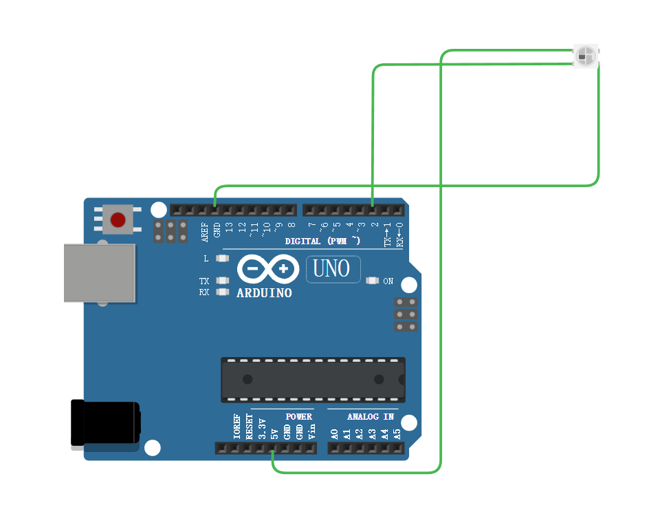 DOUT: 接收输出信号,根据输出信号变成特定颜色,连接 Arduino 板的数字引脚(0~13)