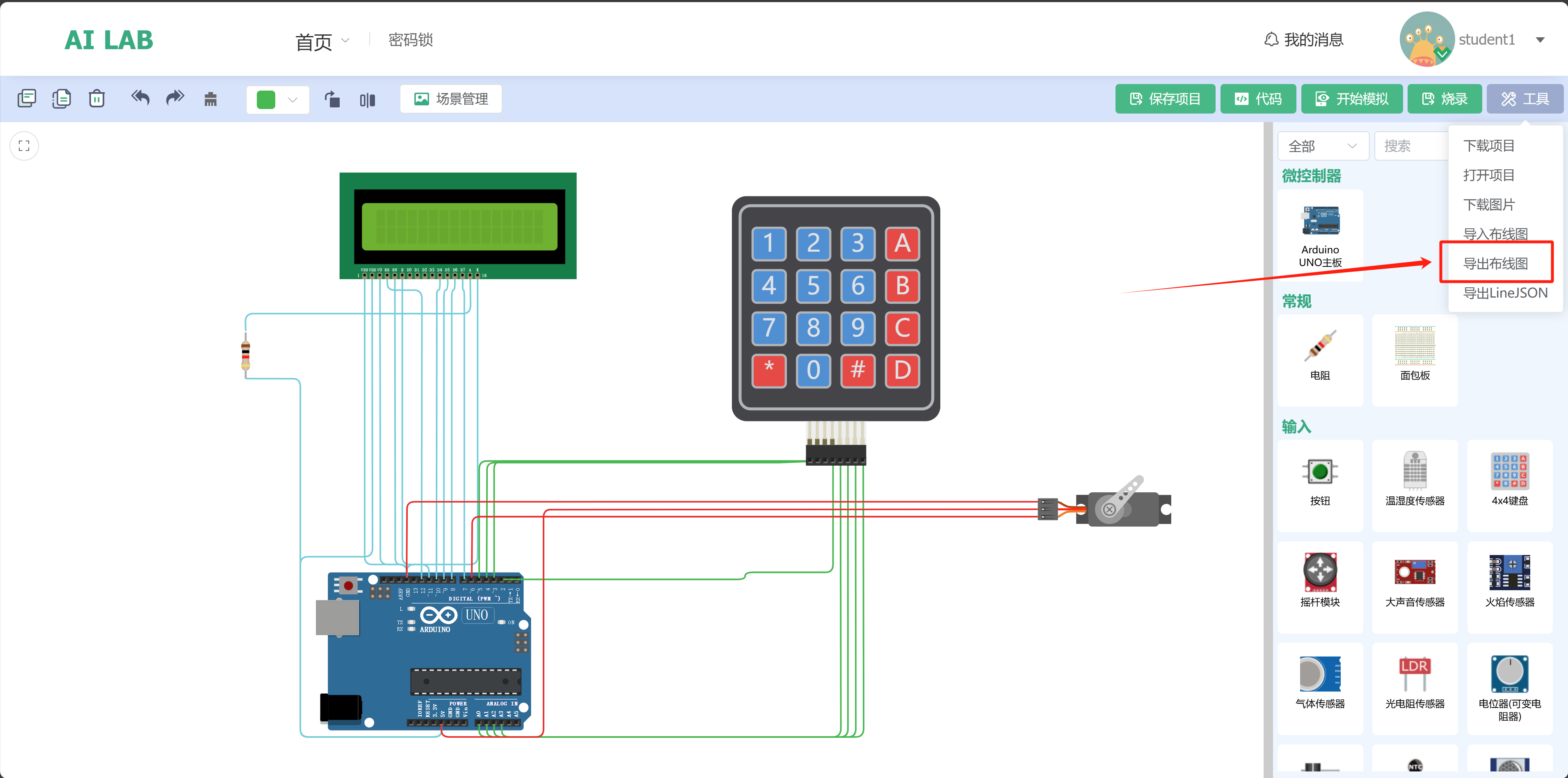 我们需要将布线结果与代码结果分别进行导出,首先我们看布线。在右上角工具栏中选择导出布线图。