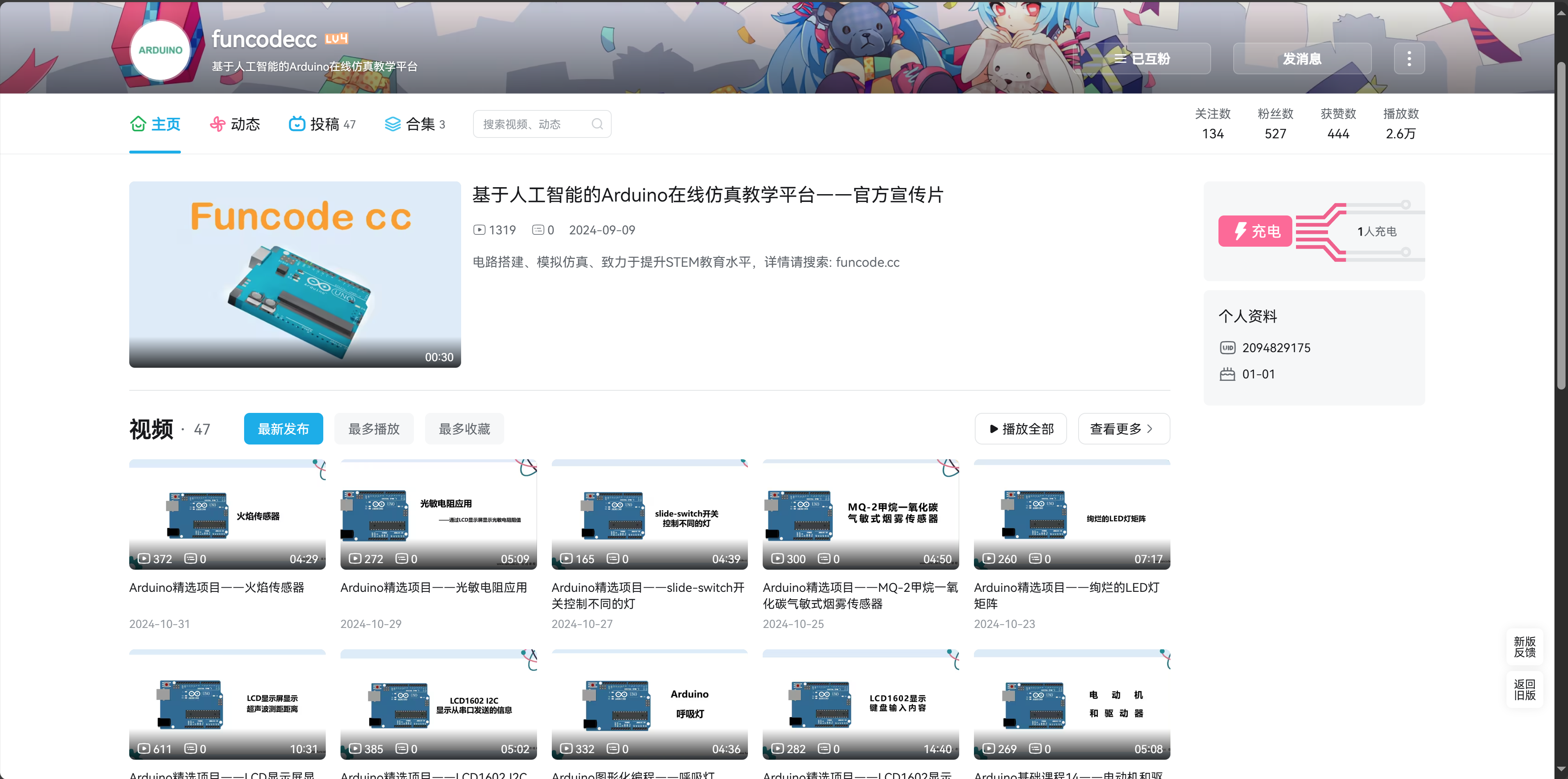 同时,我们为精选项目设置了免费的配套课程,可以在 b 站搜索 funcodecc,亦或是访问 https://space.bilibili.com/2094829175?spm_id_from=333.1387.fans.user_card.click,即可查看相关课程。