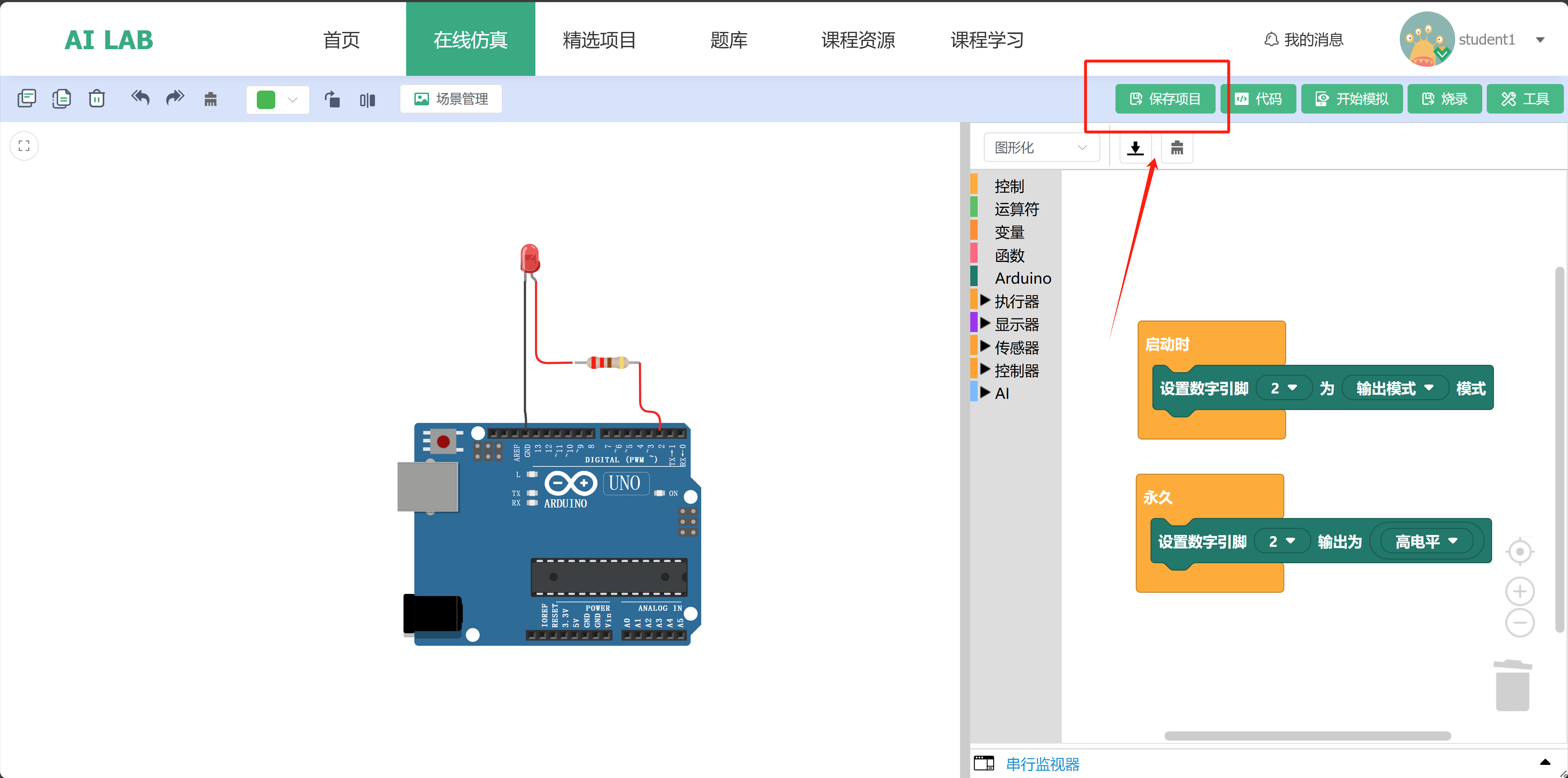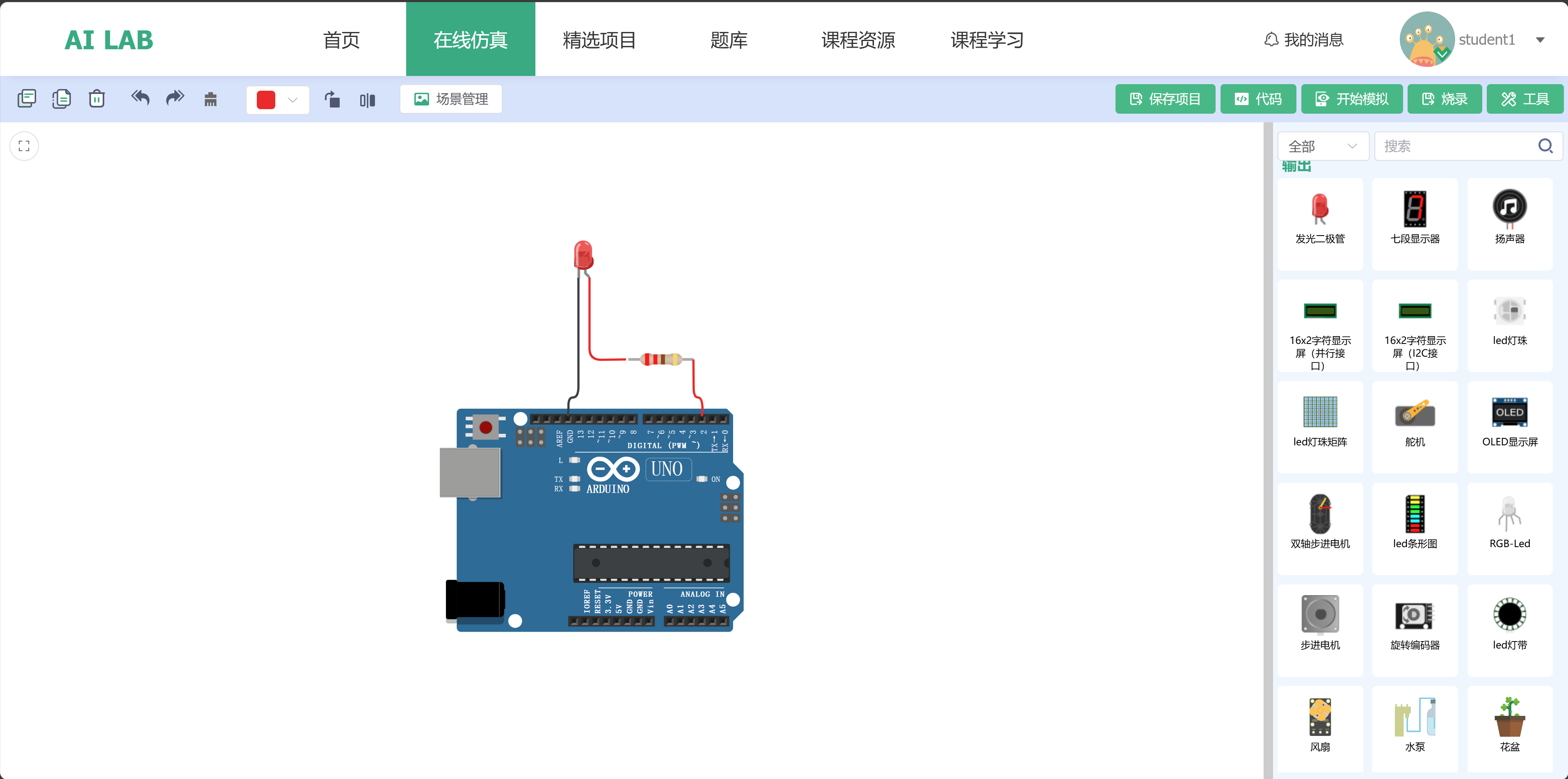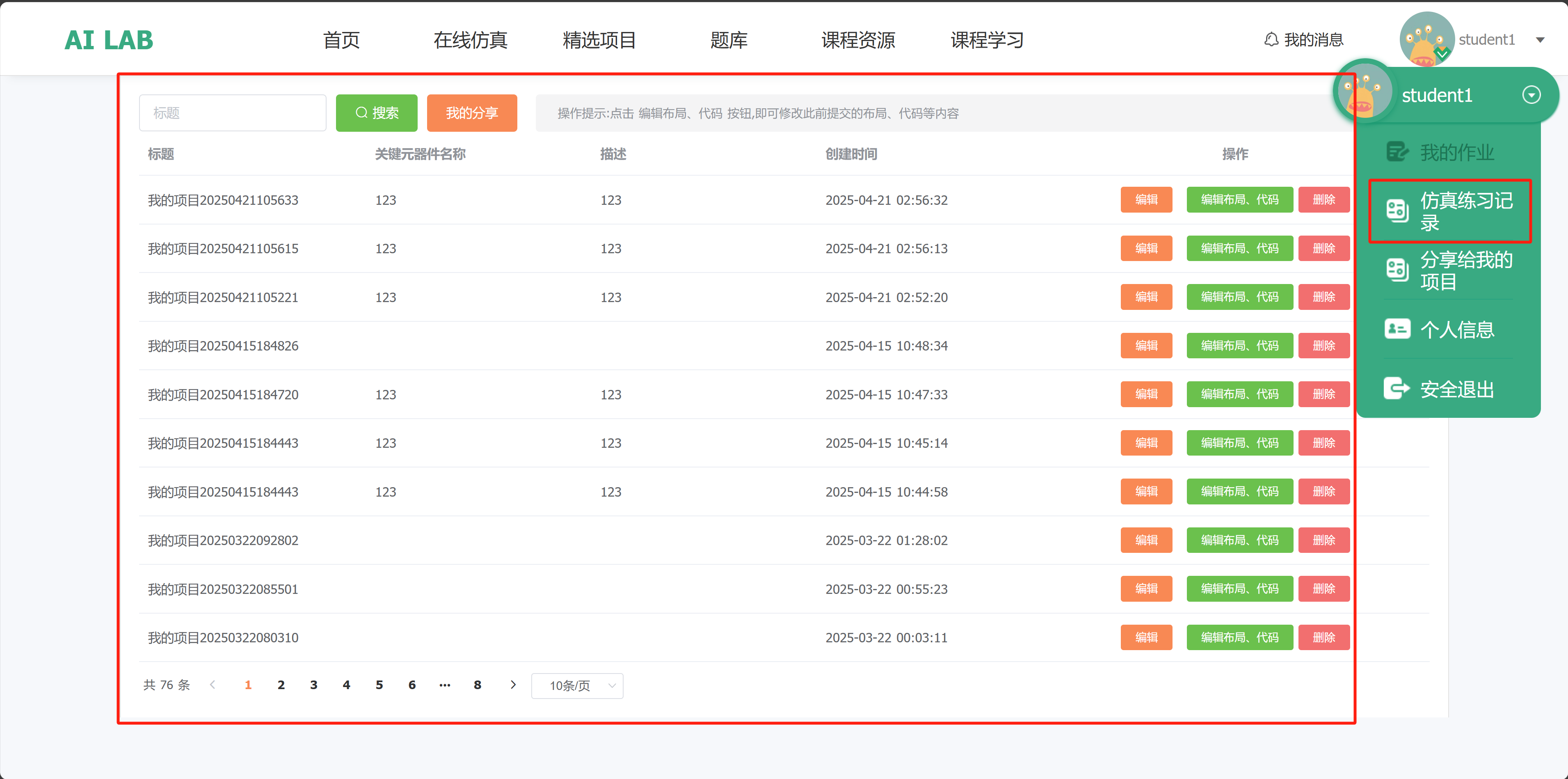 点击保存后,我们可以在个人的仿真练习记录中,找到我们的项目,可以在此基础上继续编辑。