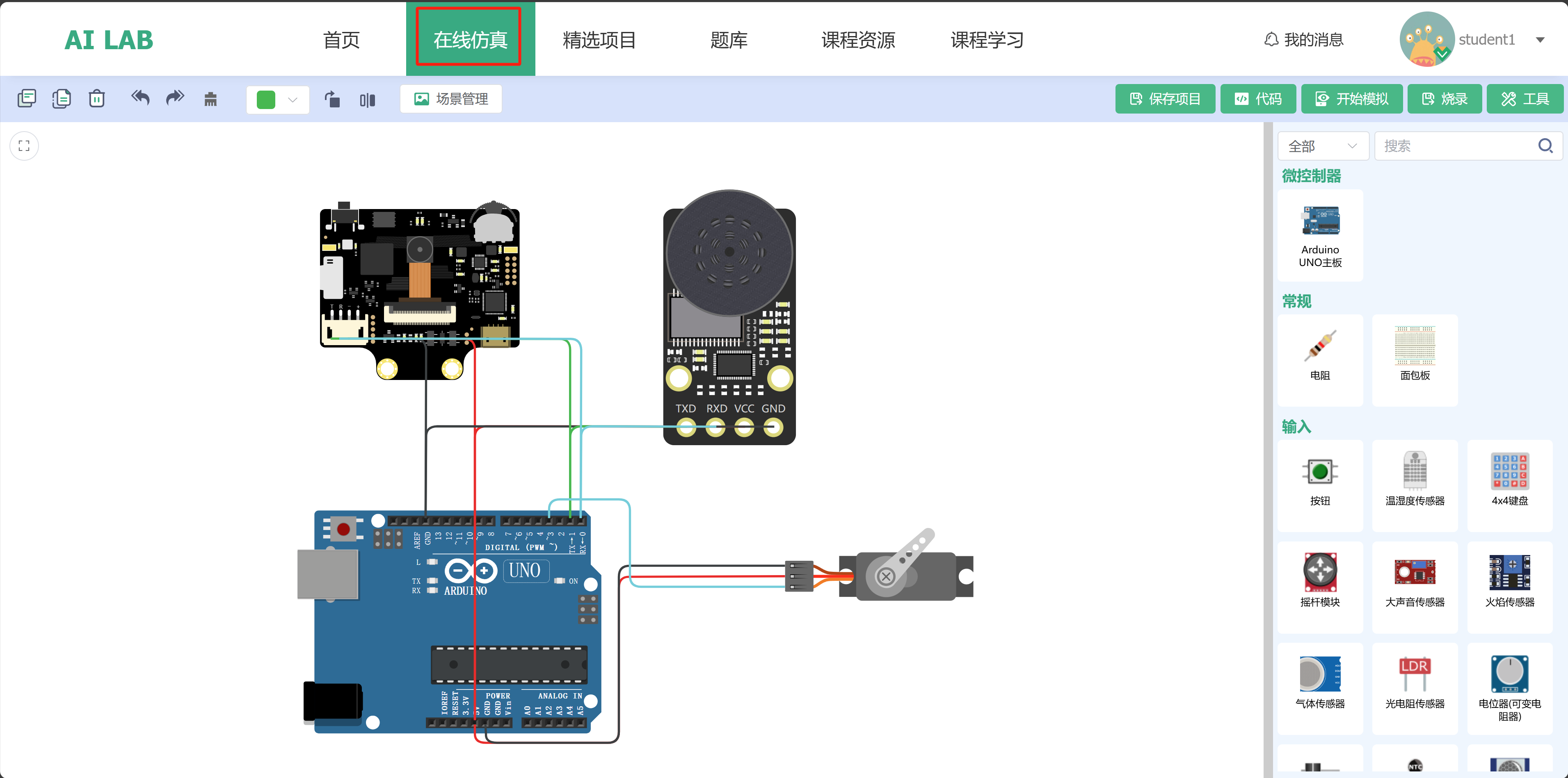 登录网页后,我们可以点击顶部导航栏的“在线仿真”,进行操作。