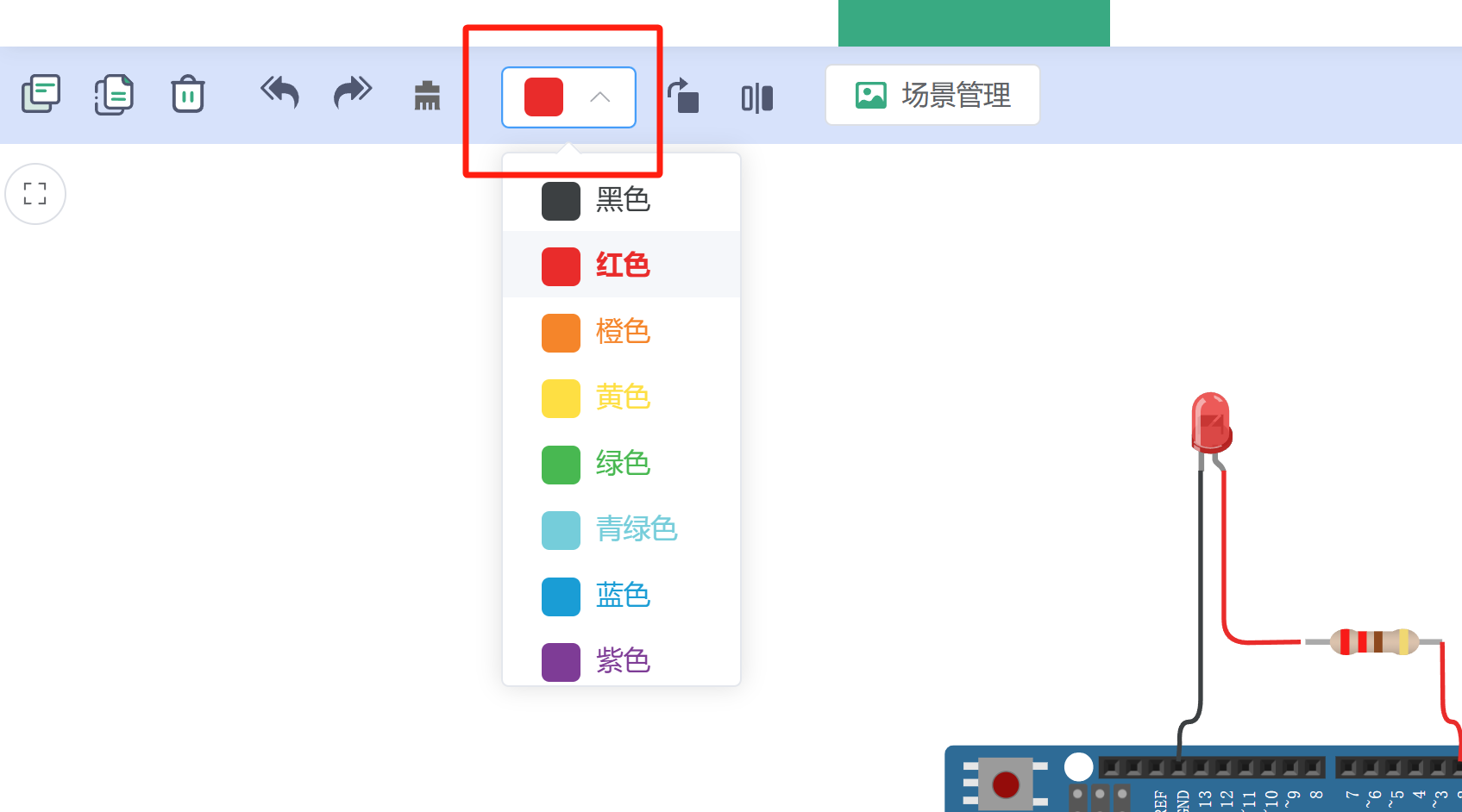 场景管理用于更改在线仿真画布背景,支持用于制作情景化教学项目,切换教学场景。