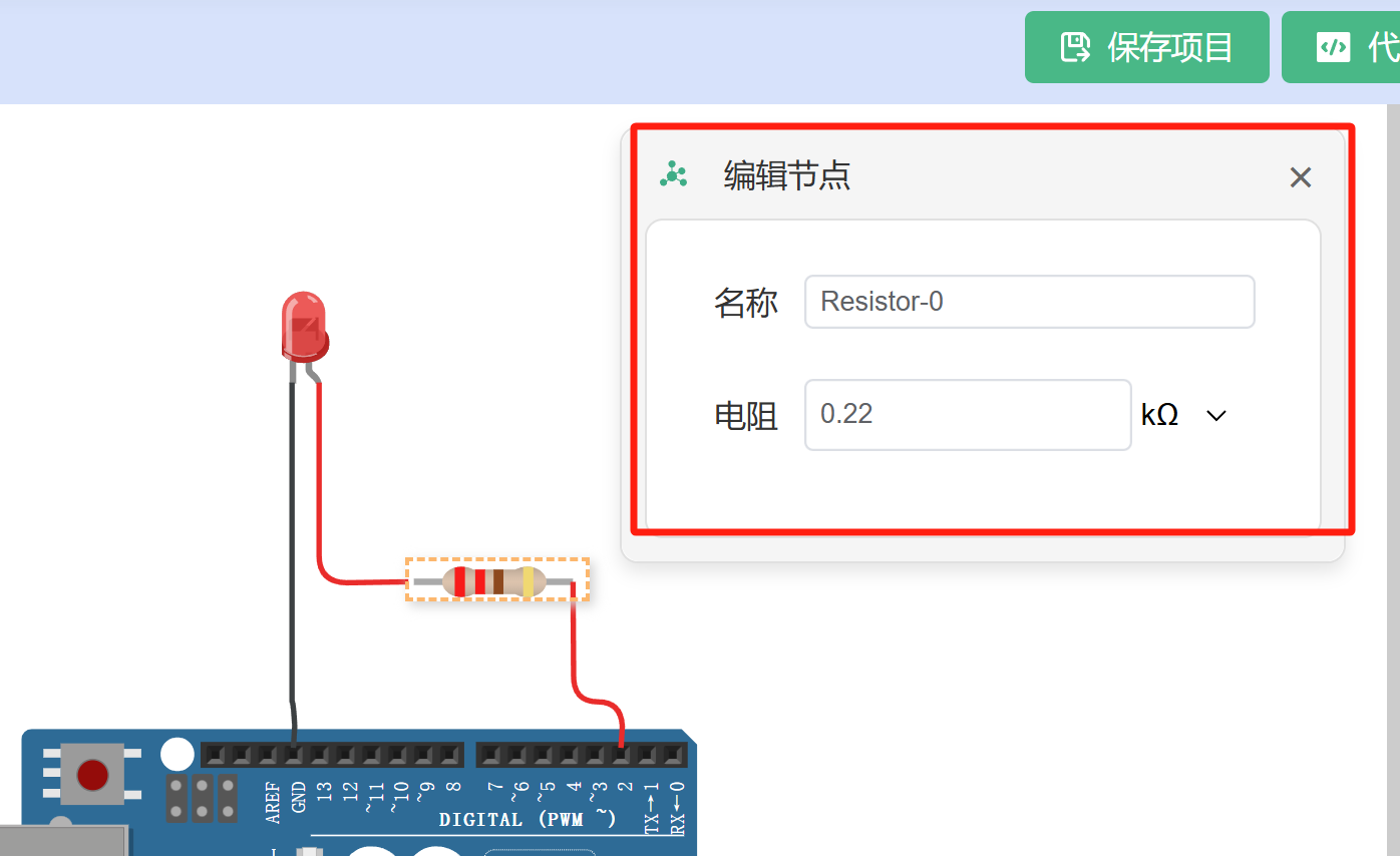 可以选中界面当中的元器件,对元器件参数进行编辑,此处以电阻为例,当我们选中电阻时,我们可以修改电阻的欧姆。