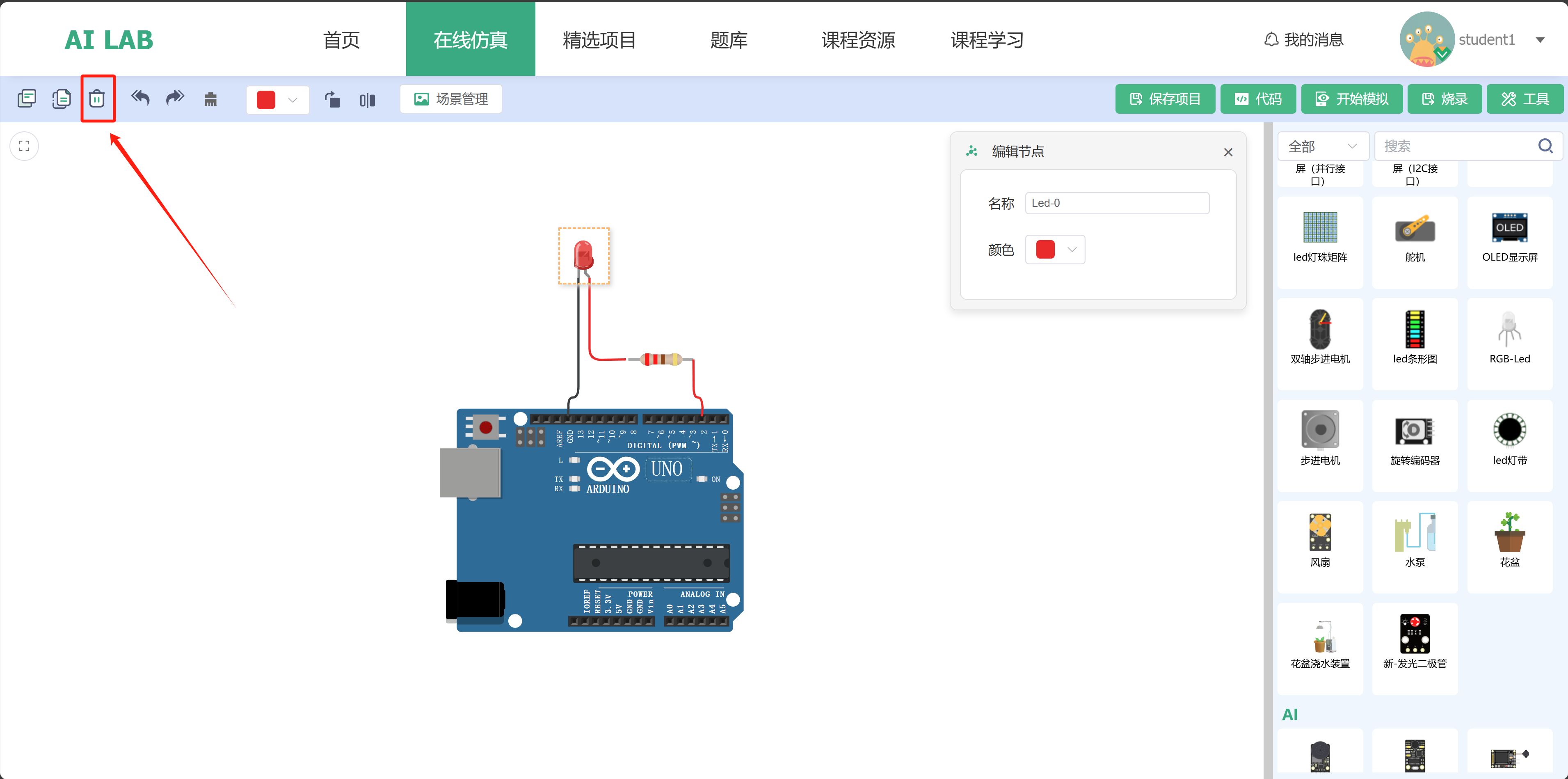 我们以点亮一盏 LED 灯为例,来演示如何使用在线仿真平台。