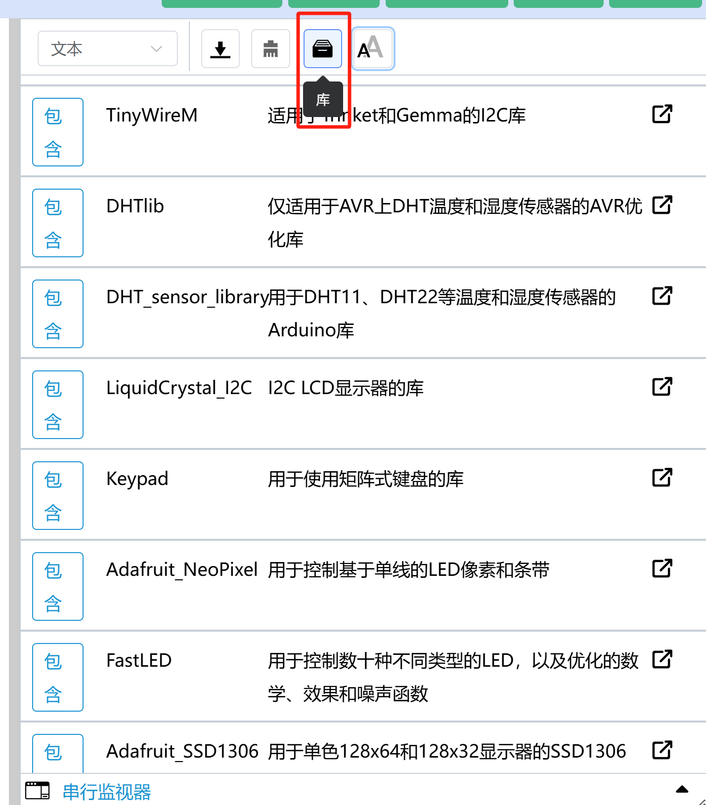 我们可以选中代码旁边的“库”按键,查看已有的库。